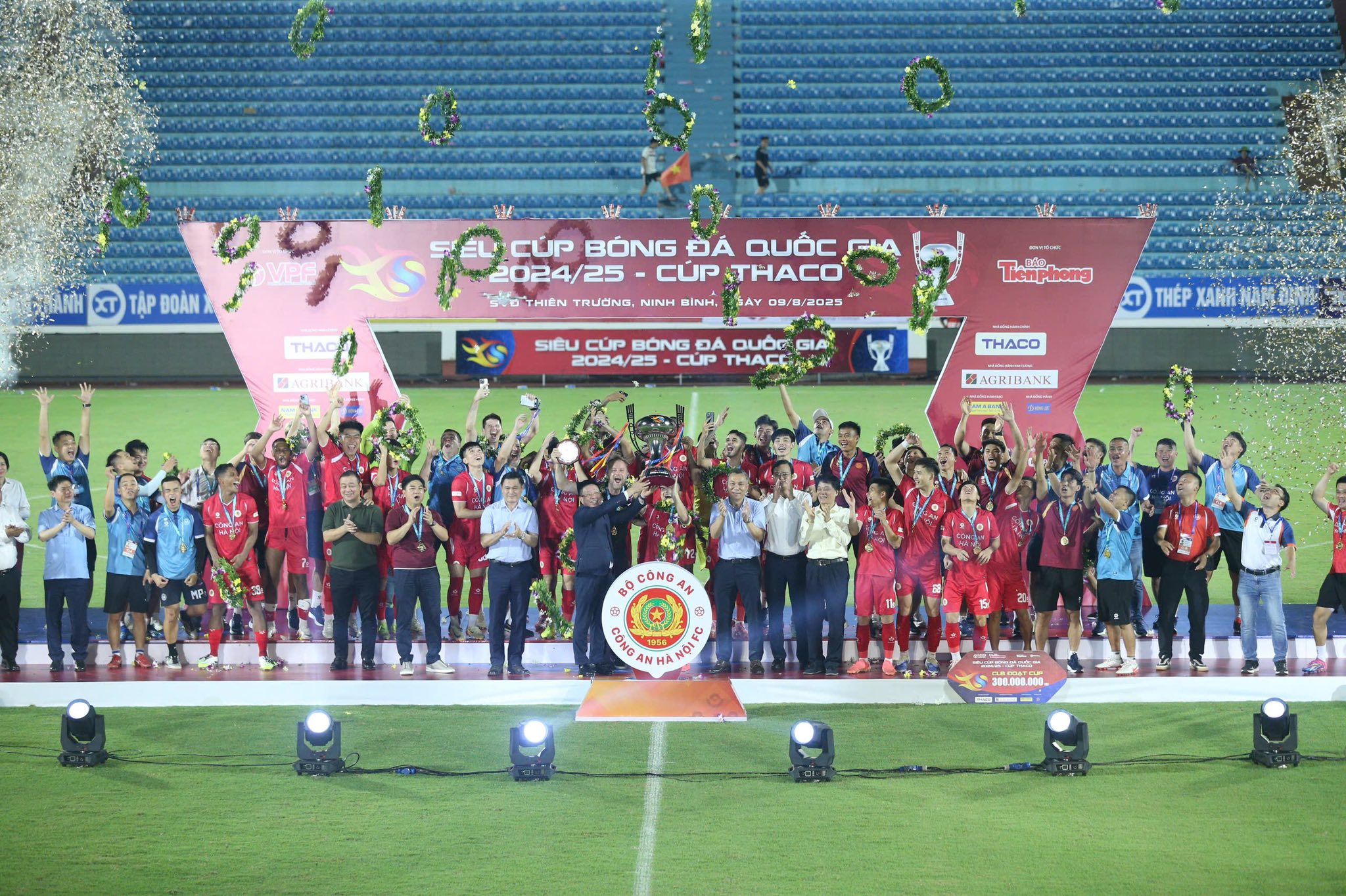 Trận tranh Siêu Cúp Quốc Gia 2024/25 giữa CLB Thép Xanh Nam Định và CLB Công an Hà Nội đã khép lại với chiến thắng nghẹt thở 3-2 dành cho đội bóng Thủ đô. Đây là danh hiệu mở màn mùa giải mới, mang ý nghĩa khẳng định vị thế và tham vọng của nhà vô địch V-League.